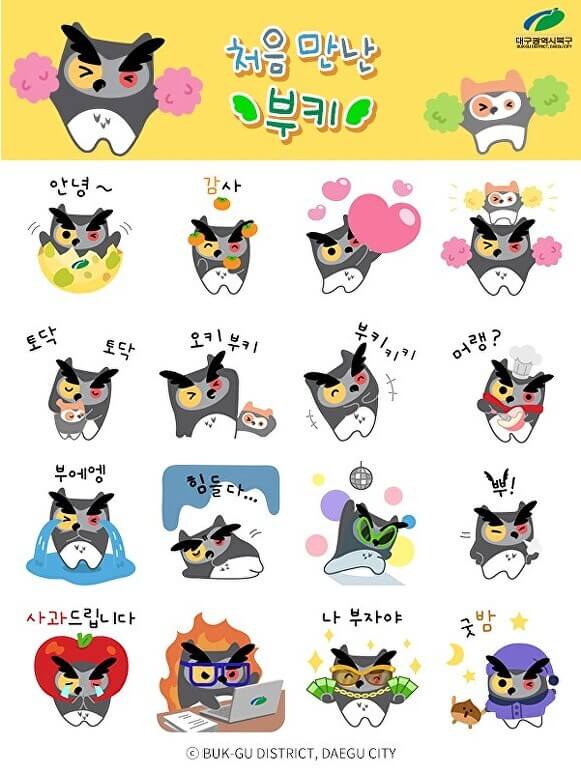 카톡 무료 이모티콘 다운로드하기 - 대구 북구청 '부키'